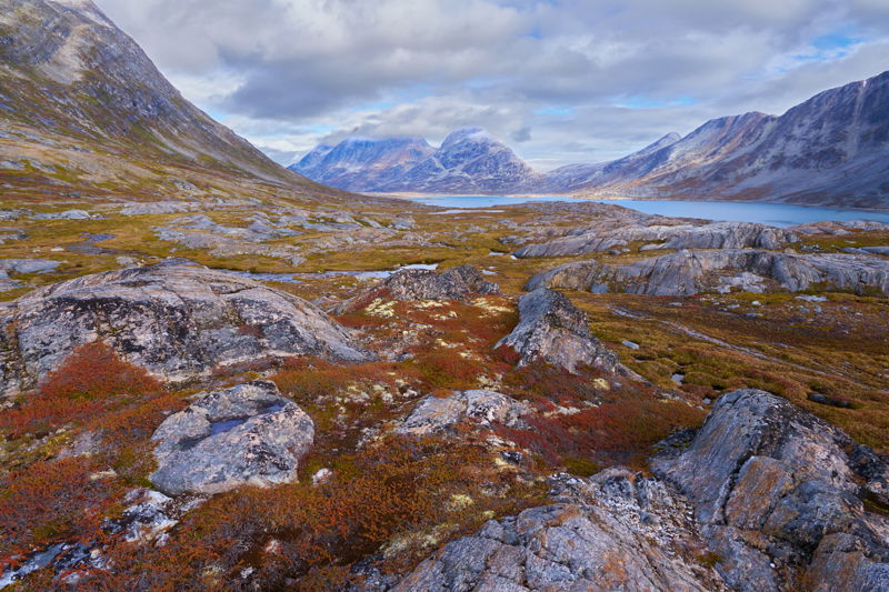 Oost-Groenland kent amper dorpjes en er wonen dan ook weinig mensen. Eigenlijk is het niet te vergelijken met het westelijke deel van dit gigantische eiland. Tasiilaq ligt aan een relatief kleine fjord die uitkomt op de Noord Atlantische oceaan. De baai ligt vaak bezaaid met ijsbergen afkomstig vanuit de Sermilik fjord. Loop je het dorp uit dan bevind je je meteen op de uitgestrekte toendra waarin de prachtige herfstvegetatie kleurt op de rotsen.