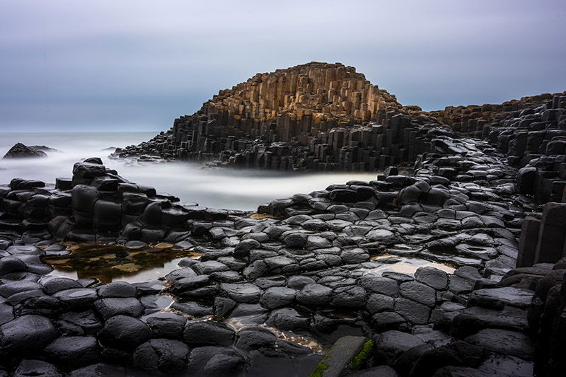 De populaire en bijzondere Giant’s Causeway, met meer dan 40.000 basaltkolommen, vormt een creatieve getuigenis van een ver en vulkanisch verleden. De wetenschappelijke verklaring van dit fenomeen, vulkanische activiteit van zo’n 60 miljoen jaar terug, is weliswaar interessant, maar de mythe over het ontstaan ervan spreekt onze verbeelding als fotograaf veel meer aan: